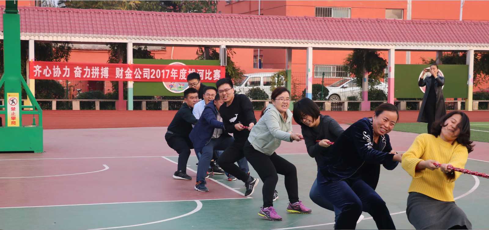 為豐富員工文化生活,增強(qiáng)團(tuán)隊(duì)凝聚力和集體榮譽(yù)感,財(cái)金公司于10月26舉辦了以“齊心協(xié)力,奮力拼搏”為主題的拔河比賽。
