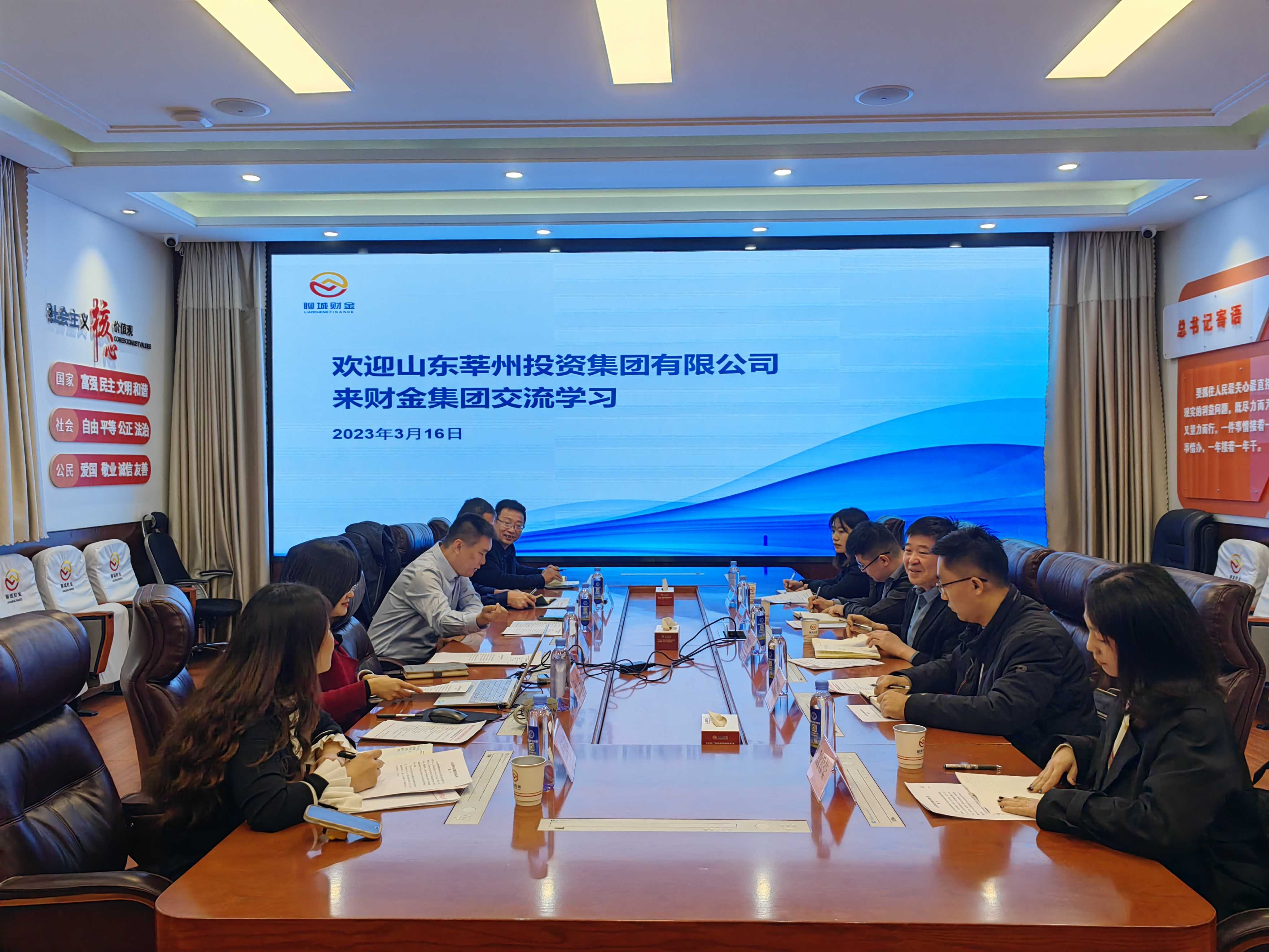 3月16日,山東莘州投資集團有限公司黨委副書記、總經(jīng)理陳現(xiàn)啟帶隊赴聊城財金集團開展交流學習活動。財金集團副總經(jīng)理趙青賓、總經(jīng)理助理孫競及相關(guān)人員參加座談。